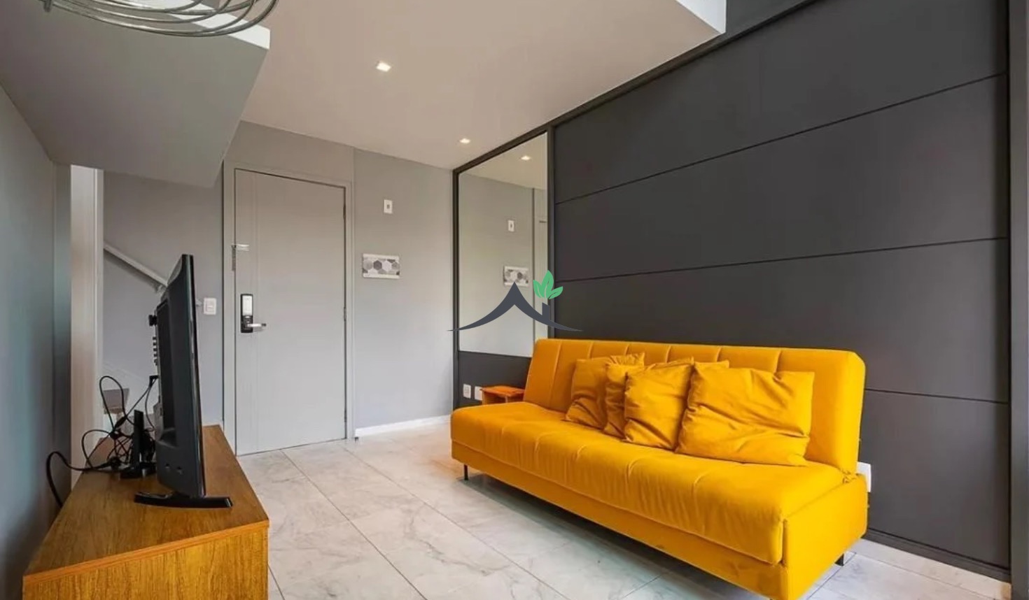 1 sala, 1 varanda, 2 banheiros, 1 vaga de garagem, poente, prédio com elevador. O imóvel está mobiliado e decorado, conta com armários planejados e ar-condicionado, proporcionando conforto e praticidade.