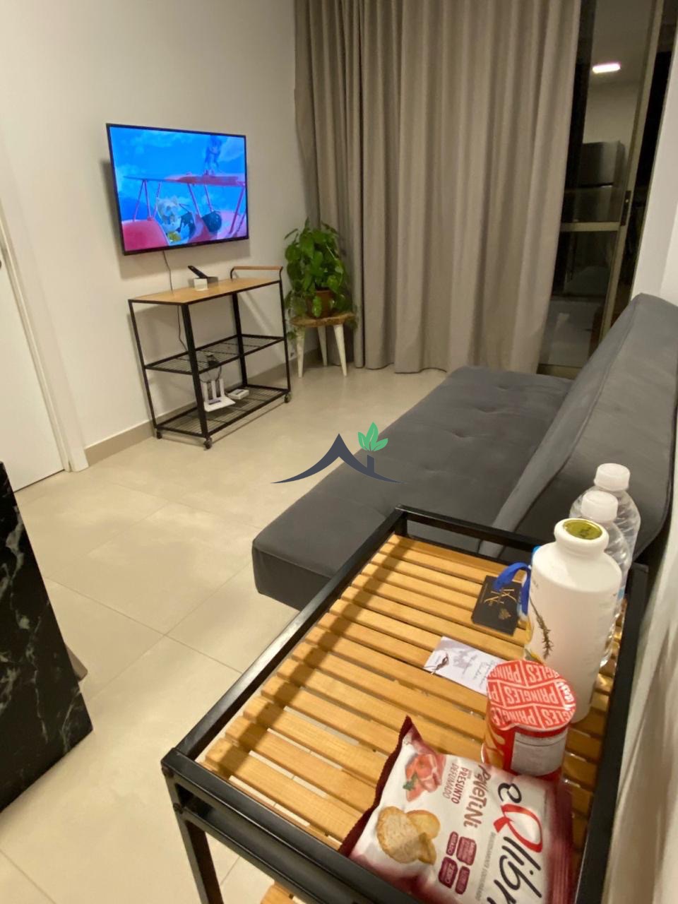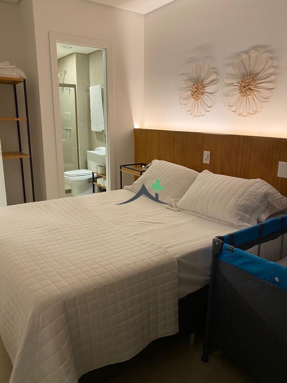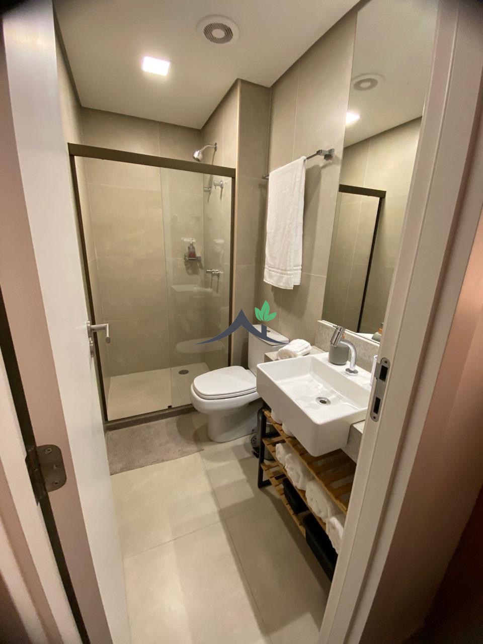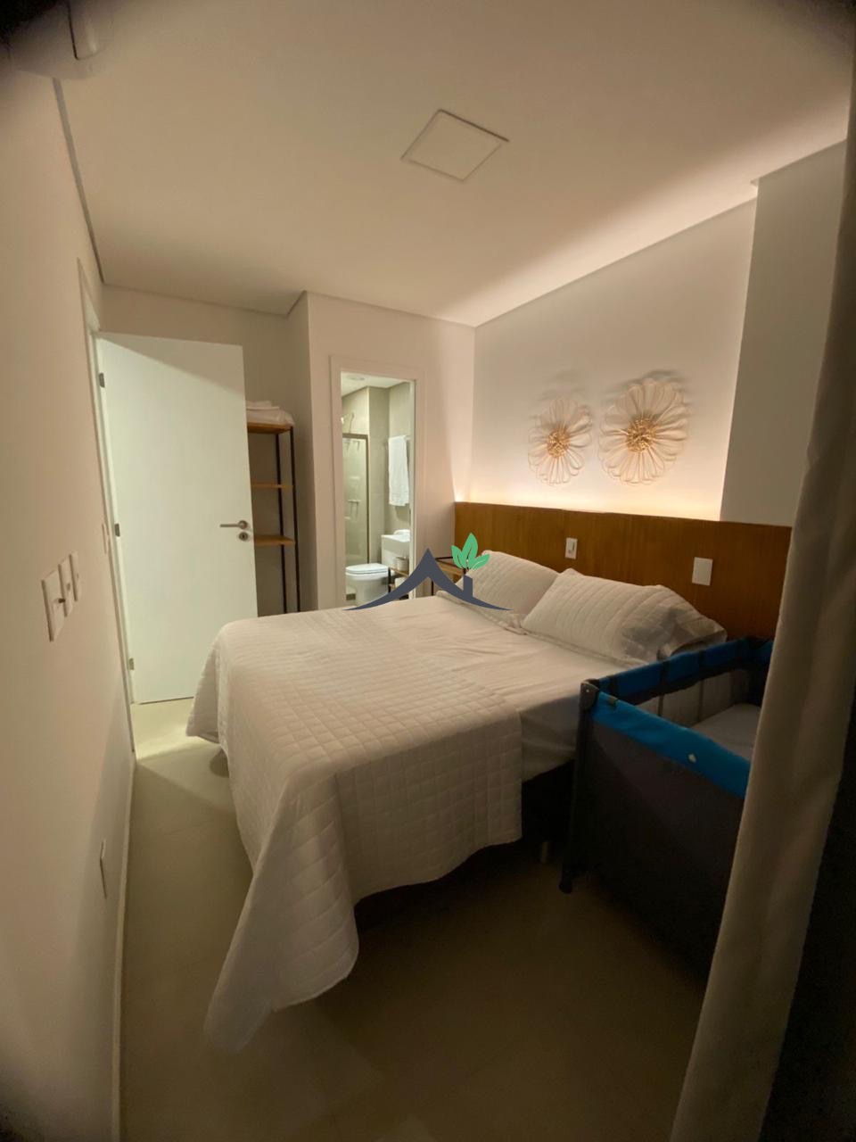 Esse apartamento é completo, mobiliado e decorado, com ar condicionado, varanda, um quarto, um banheiro sendo suíte, cozinha integrada com área de serviço. Com 44m², uma vaga de garagem, prédio com elevador.