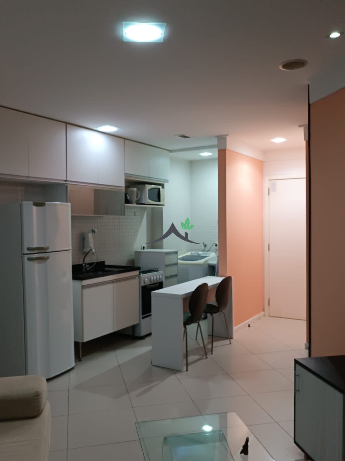 Apartamento com 45m², quarto e sala, mobiliado, cozinha com armários, ar-condicionado, varandinha charmosa, uma vaga de garagem coberta, prédio com elevador.