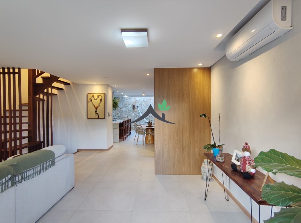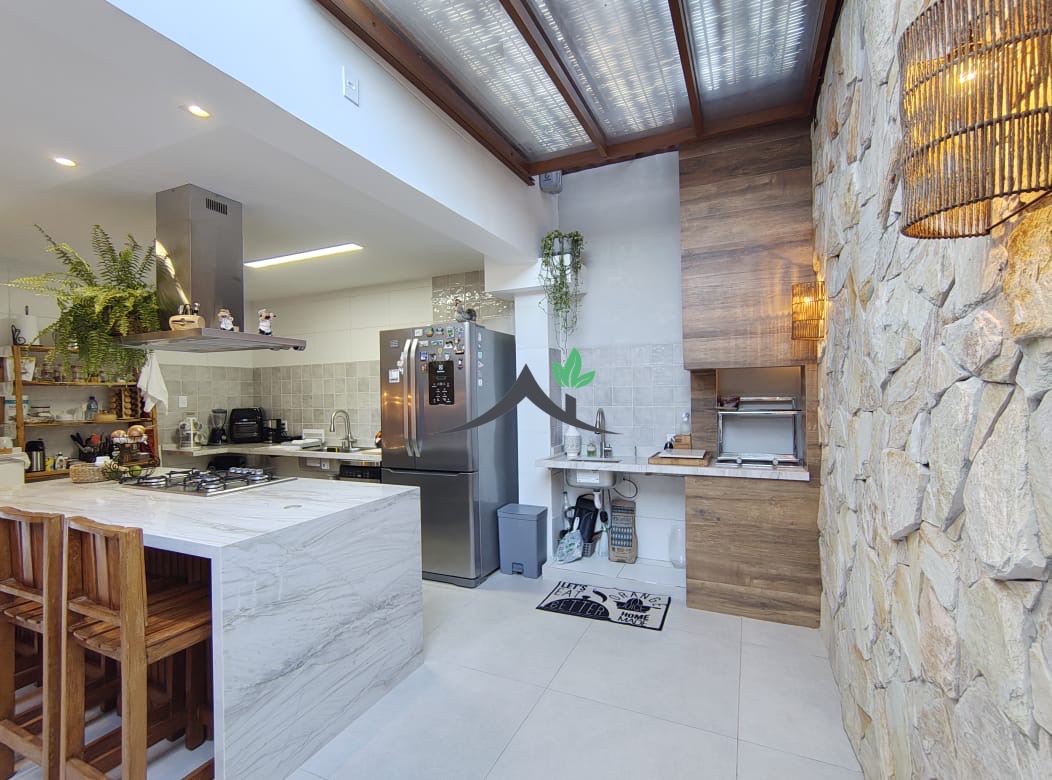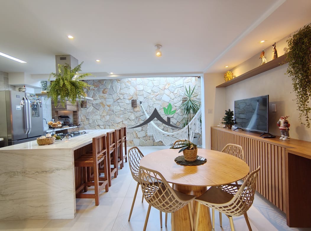 Apresento uma casa triplex moderna, totalmente reformada, com 166 m² de área útil, 3 quartos sendo 1 suíte, 2 salas amplas, cozinha com ilha, área de serviço, armários planejados, 2 varandas, 3 banheiros e 4 vagas de garagem. O imóvel conta com ambientes integrados, área gourmet com churrasqueira, usina solar superdimensionada, preparação para carregador de carro elétrico e acabamento de alto padrão. Ideal para quem busca conforto, modernidade e economia.